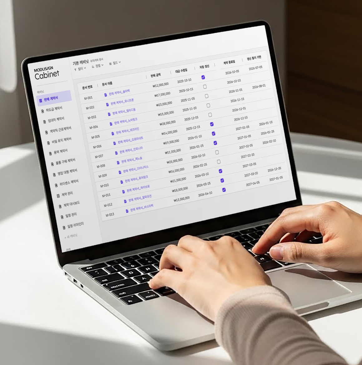 모든 비즈니스의 핵심인 계약, 모두싸인 캐비닛은 체결 이후 계약 관리를 위한 최적의 솔루션입니다.